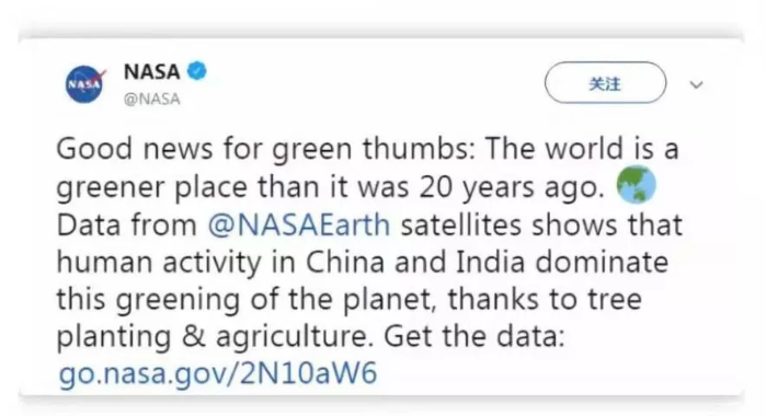 你還記得嗎,不久前美國國家航空航天局(NASA)在一條推特中欣喜表示,過去20年中,世界變得越來越“綠色”了。