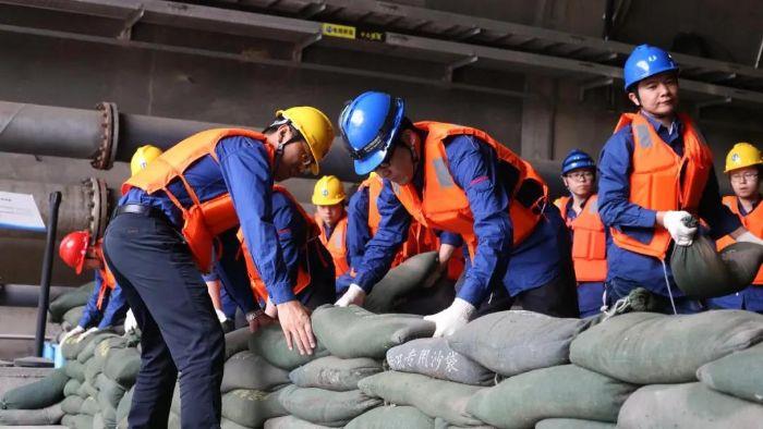 ▲ 長江電力溪洛渡電廠青年突擊隊(duì)員緊張有序地開展防汛演練
