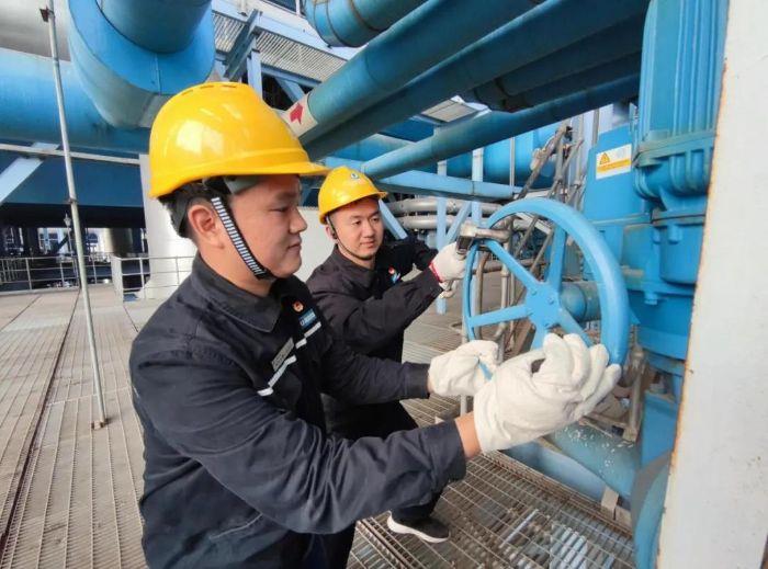 ▲ 鄂州發(fā)電公司青年先鋒工作團(tuán)隊(duì)隊(duì)員現(xiàn)場調(diào)試閥門
