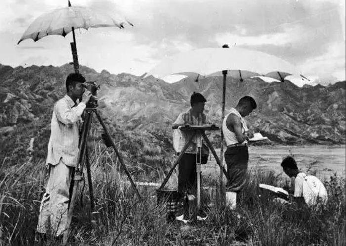 上世紀五十年代我國科技人員進行壩址地質勘察(陳仲原供圖)