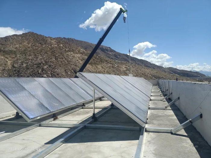 三峽電商積極參加西藏援建項目,圖為其組織供應的電暖系統設備正在吊裝。