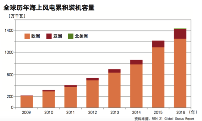 如今,我國(guó)業(yè)界甚至已經(jīng)開(kāi)始進(jìn)軍海上風(fēng)電的發(fā)源地—?dú)W洲。2016年7月,中廣核歐洲能源公司與法國(guó)合作方公司組成的聯(lián)合體成功中標(biāo)法國(guó)首批漂浮海上風(fēng)電先導(dǎo)項(xiàng)目格魯瓦(Le Groix)項(xiàng)目,該項(xiàng)目將由4臺(tái)單機(jī)容量6兆瓦的漂浮式海上風(fēng)力機(jī)組成。2017年9月,中國(guó)長(zhǎng)江三峽集團(tuán)和葡萄牙電力公司成功中標(biāo)英國(guó)莫里(Moray)海上風(fēng)電項(xiàng)目,該項(xiàng)目裝機(jī)容量為95萬(wàn)千瓦。