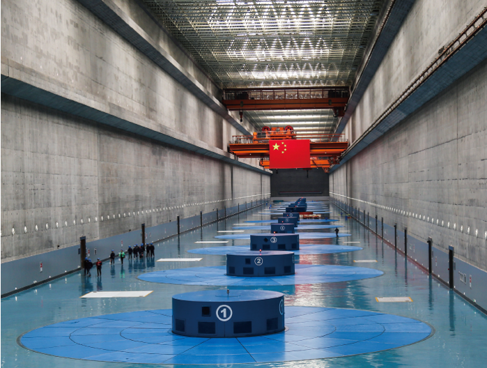 •   三峽水電站總裝機容量為2250萬千瓦,是當今世界上裝機容量最大的水電站,多年平均年發電量882億千瓦時。