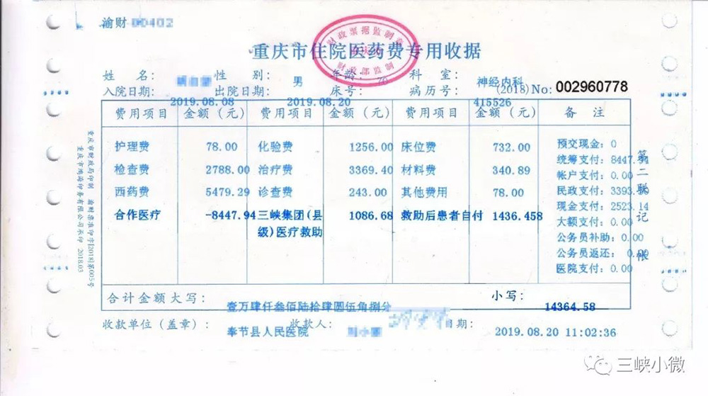 原來,在巫山、奉節,貧困患者完成“一站式”結算時,會在“扶貧醫療救助明白卡”或者收據單據上發現一欄“三峽集團健康扶貧醫療基金”/“三峽集團(縣級)醫療救助”。這是三峽集團為建檔立卡貧困人口提供的“兜底”保障。建檔立卡貧困人口到縣內定點醫療機構住院就醫產生的醫療費用,通過‘五重保障’減免報銷后,如果還有超過總費用10%的錢需要繳納,超出的部分就由三峽集團提供的基金金兜底救助,確保患者自付比例控制在總費用的10%以內,大大減輕了貧困患者的經濟負擔。