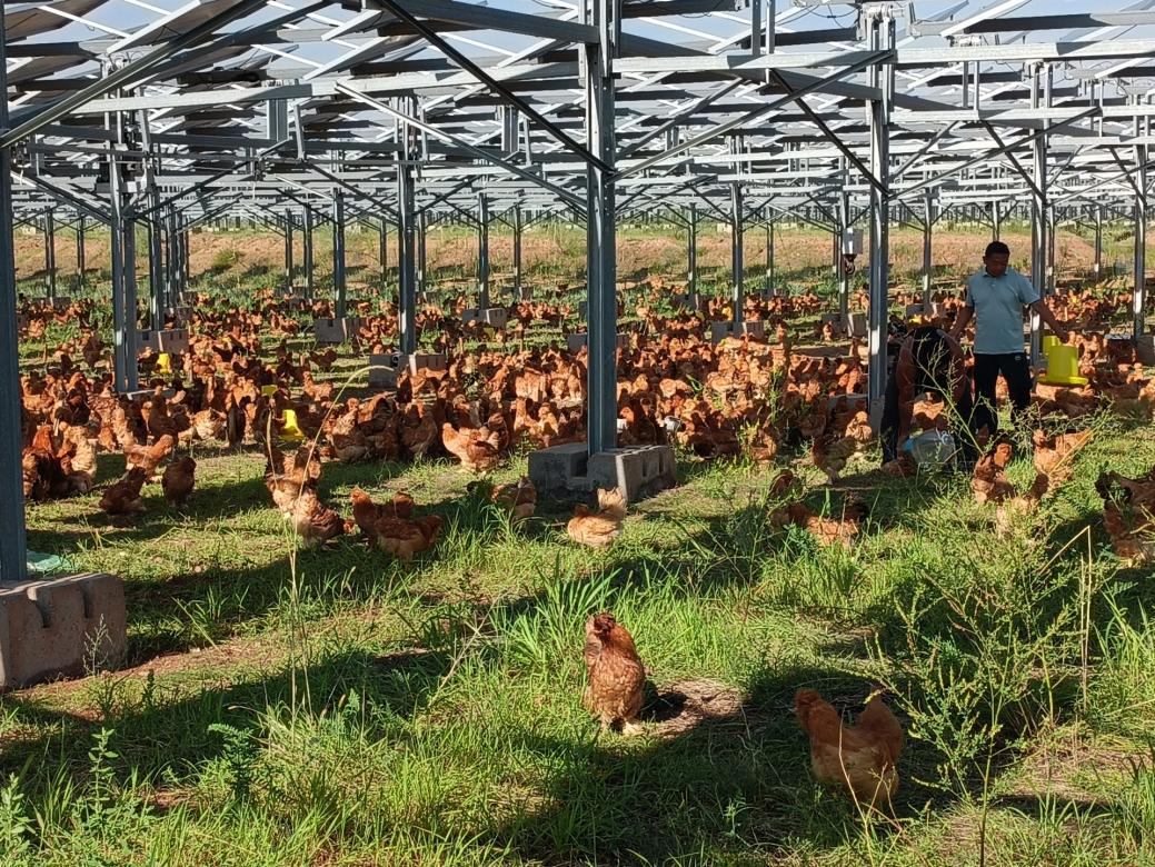 生態養殖第一種方式是沙漠牧雞,通過合理利用沙化土地,開展沙漠牧雞生產活動,利用雞的施肥、松土、滅蝗、播種等特性,實現土壤改良和牧草增收。通過圍欄將場地進行分區,劃區輪牧,低密度籠式散養,每年可向沙地生物施肥約300-360千克/畝,三年后實現植被覆蓋度達到80%以上,產草量達到400千克/畝以上。