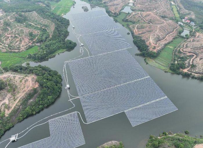 “送瘟神”水庫水上鋪設(shè)光伏板 攝影:陳磊