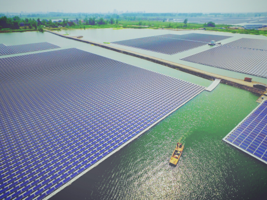 圖為三峽集團(tuán)在安徽淮南投資建設(shè)的漂浮式水面光伏項(xiàng)目。? 三峽集團(tuán)供圖 張怡然/攝
