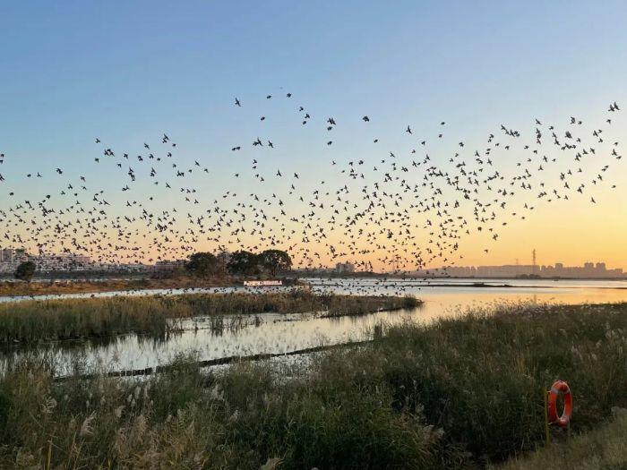 每年冬天,自北方而來的候鳥會選擇水草豐茂的湖泊棲息。近兩年,亞洲最大城中湖——湖北武漢湯遜湖水生態逐步好轉,出現了久違的“萬鳥翱翔”的盛況。