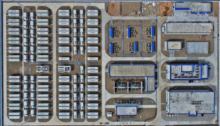 2021年末,三峽烏蘭察布新一代電網友好綠色電站示范項目首批機組成功并入內蒙古電網,成為國內首個儲能配置規模達到千兆瓦時的新能源場站。電站總建設規模200萬千瓦,分為170萬千瓦風電項目和30萬千瓦光伏項目,全部投產后,年平均發電量近60億千瓦時,可滿足近30萬戶家庭月用電量(按每戶居民月用電量200千瓦時計)。項目配套建設55萬千瓦×2小時儲能系統,可儲存110臺5兆瓦風機滿發2小時產生的能量,在陰天或無風時有效“查漏補缺”,為電網系統調峰調頻等提供輔助服務。