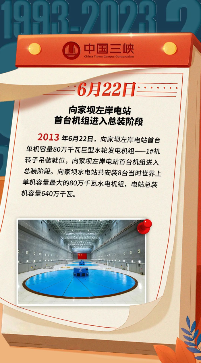 三峽·歷史上的今天丨向家壩左岸電站首臺(tái)機(jī)組進(jìn)入總裝階段(6月19日-6月25日)
