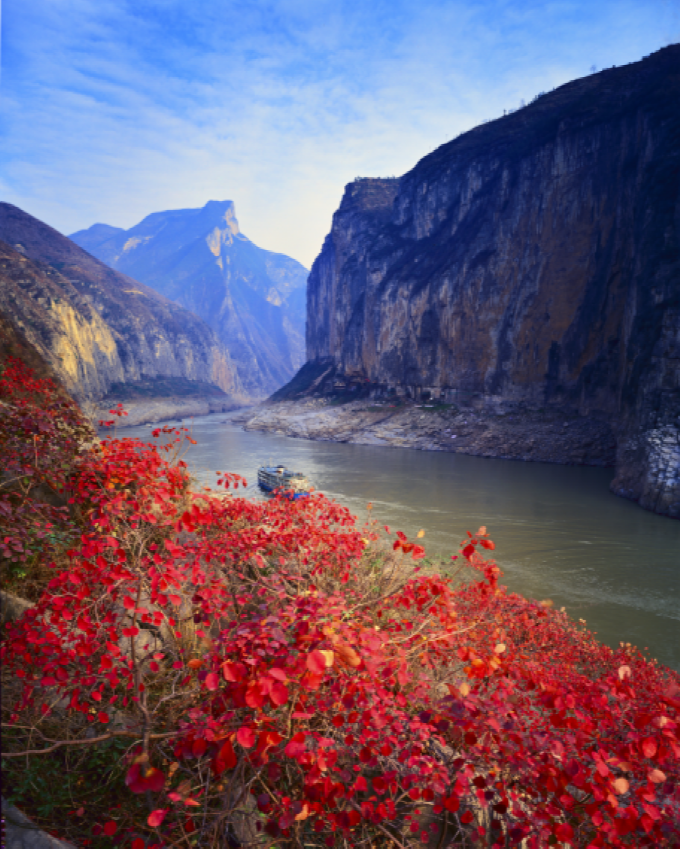 溝通巴蜀與中東部的長江上游段,俗稱川江,或稱蜀江,一般指四川宜賓至湖北宜昌之間的河段,全長約1030公里。重慶以上的370公里為上川江,重慶以下的660公里稱為下川江,下川江流經(jīng)丘陵和高山峽谷地區(qū)落差120米的三峽地區(qū),因兩岸山巒夾峙,水流急湍,所以又有“峽江”之稱。詩圣杜甫詩云——“高江急峽雷霆斗,古木蒼藤日月昏”,描繪的就是三峽的險(xiǎn)峻。