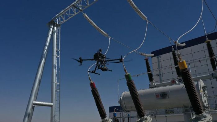 不僅在光伏場區,無人機智能巡檢已具備對集電線路、升壓站等設備的日常巡檢能力。電站運維人員還利用無人機進行每日兩次的場區道路巡視作業,確保道路無外來車輛和人員進入,為安全生產工作保駕護航。